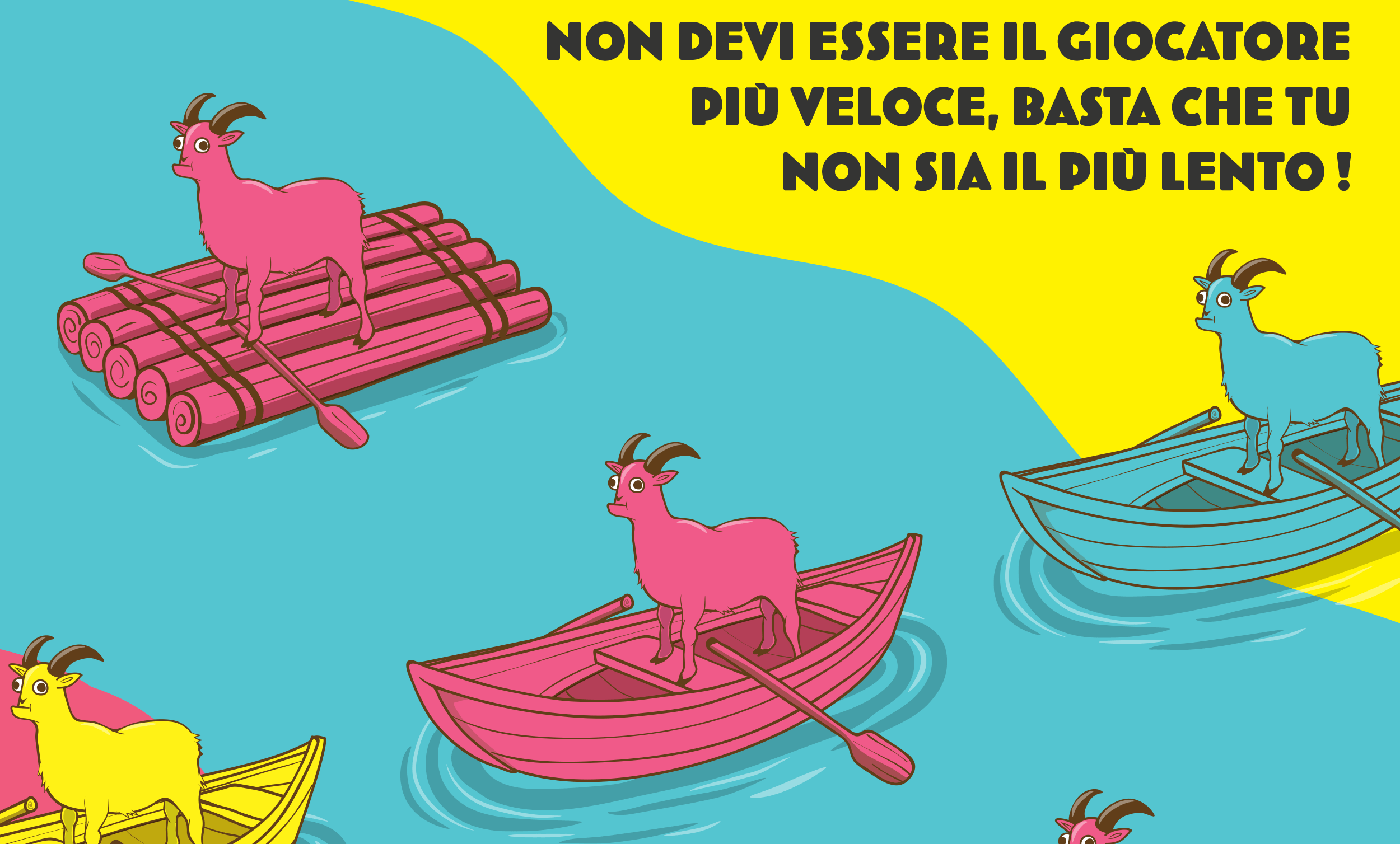 Giocate a turno le vostre Carte Capra in una griglia 3×3 disposta sul tavolo. Ogni volta che vedete 3 carte uguali (per colore o per imbarcazione) in riga, in colonna o in diagonale, afferrate subito un Salvagente. Ma attenzione! Non ci sono Salvagenti a sufficienza per tutti, e se sarete il giocatore più lento dovrete prendere un po’ di carte.