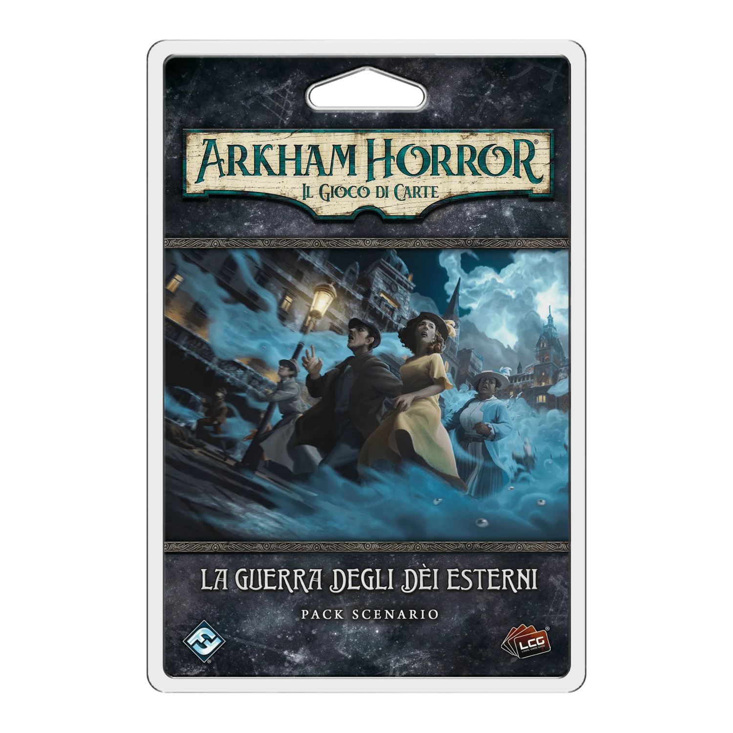 Gli investigatori dovranno collaborare per salvare la Terra dalle devastazioni de La Guerra degli Dèi Esterni. In questo scenario speciale da 78 carte per Arkham Horror LCG, tre culti arcani si scontrano per stabilire chi sarà il primo a evocare il proprio Dio Esterno e soltanto degli audaci investigatori potranno sventare le loro turpi macchinazioni.