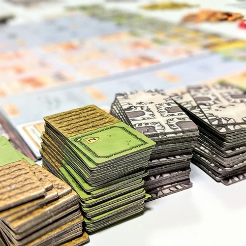 Nella partita in solitario, i giocatori potranno prendere familiarità con le 48 differenti tessere arredamento per la loro caverna.