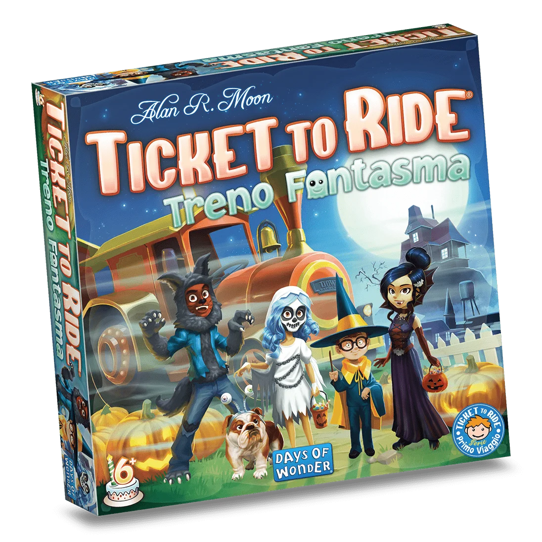Tutti in carrozza per un viaggio da brividi! In questa spaventosa edizione di Ticket to Ride: Primo Viaggio, genitori e figli si sfideranno accumulando carte di vari colori da usare per controllare linee sulla mappa e visitare così i diversi luoghi di questa città da brividi… “Toc, Toc… Dolcetto o scherzetto?”