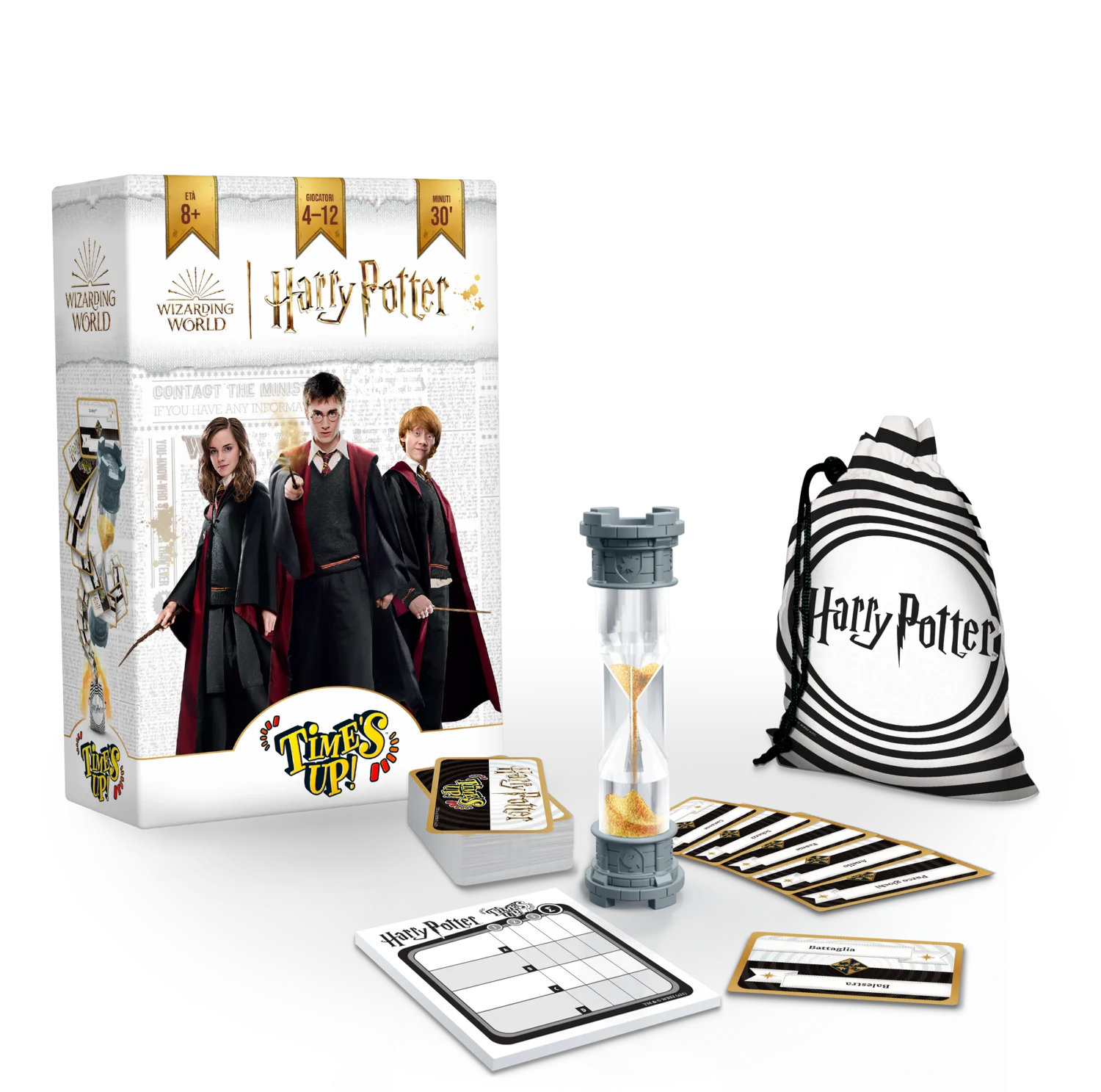 Avete 30 secondi e 3 round per far indovinare il maggior numero di parole. Con 3 diverse categorie di carte, adatte a differenti livelli di conoscenza dell’universo di Harry Potter, tutti, ma proprio tutti possono giocare!