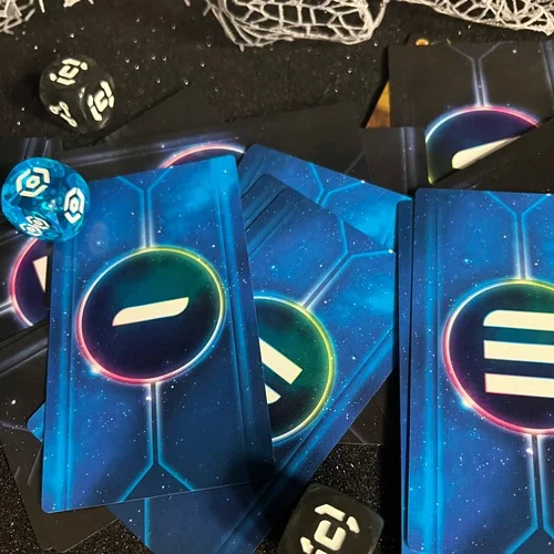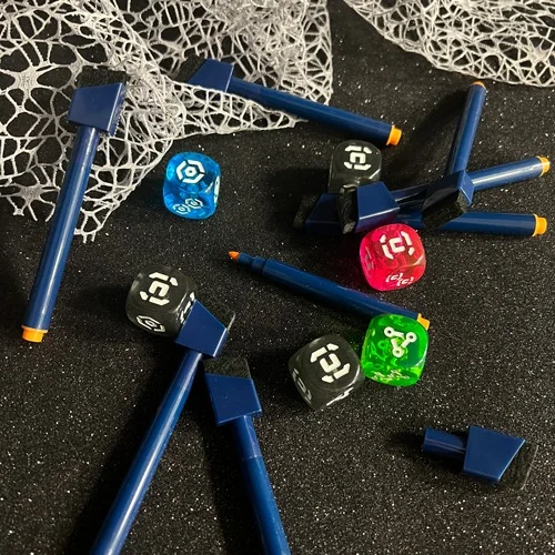 AMMIRATE L’ASCESA DI UN IMPERO. I dadi di grandi dimensioni e i pennarelli brillanti infondono vita alla galassia sulle schede dei giocatori, cancellabili e riutilizzabili.