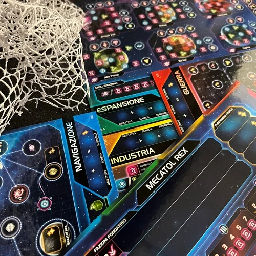 LASCIATE IL SEGNO SULLA GALASSIA. Scrivendo soltanto su una scheda alla volta, forgerete il vostro futuro come intraprendenti guerrafondai o come industriosi esploratori? Oppure tenterete di padroneggiare ogni campo?