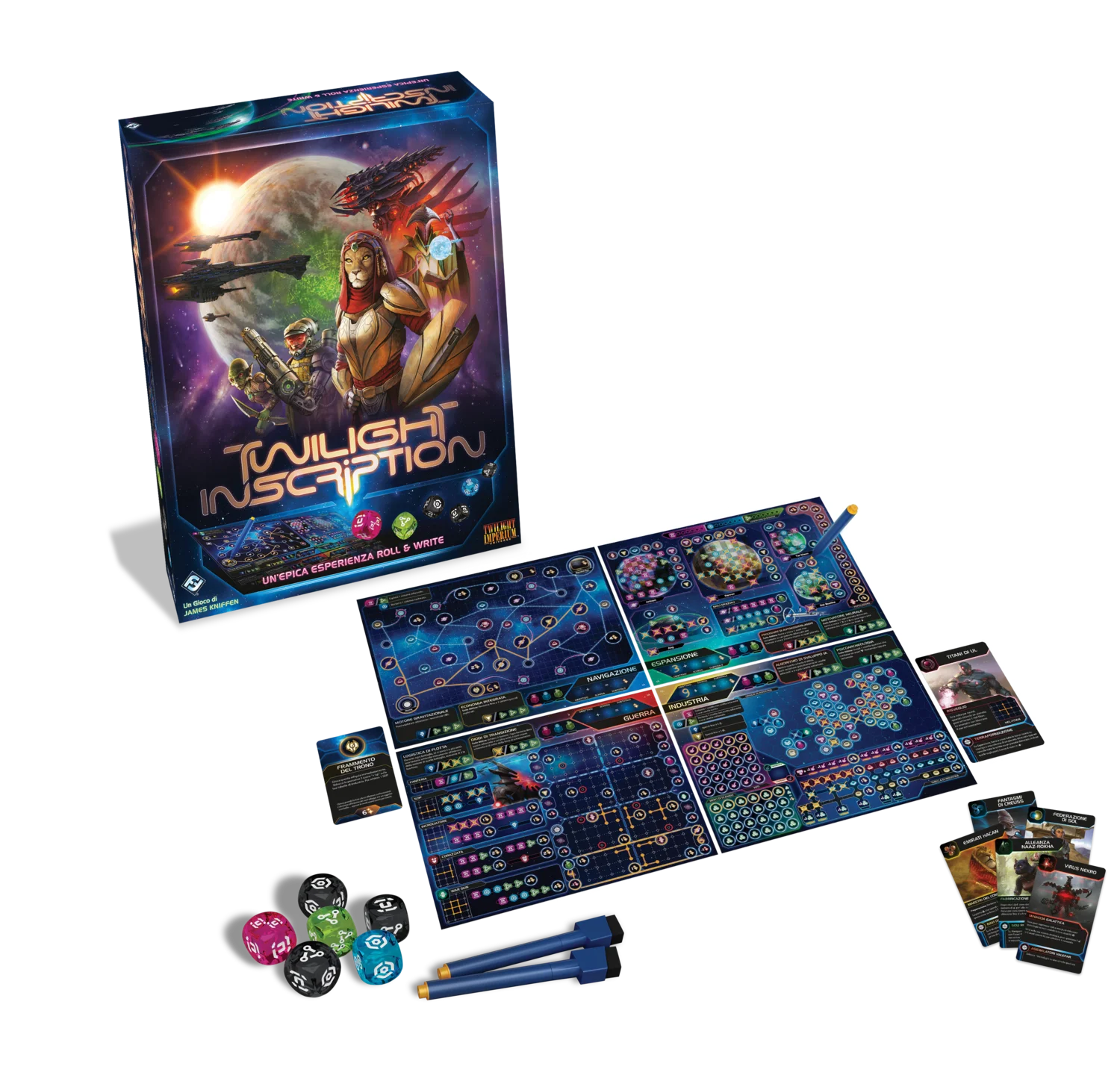 Un epico gioco roll & write nel leggendario universo di Twilight Imperium! Guidate la vostra fazione alla grandezza mentre esplorate la galassia, espandete la vostra influenza, sviluppate le infrastrutture e abbattete i vostri rivali.